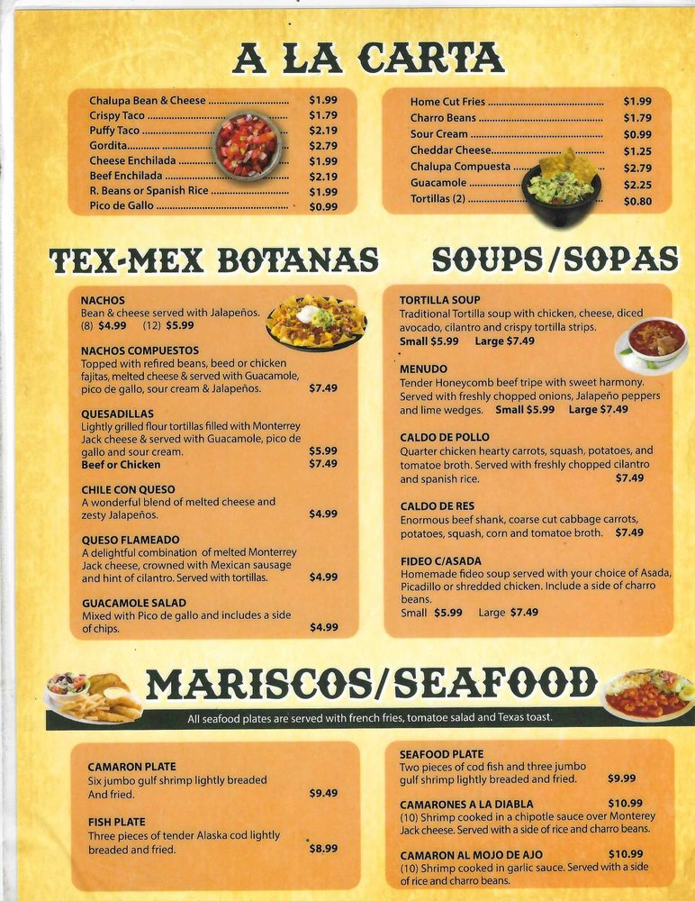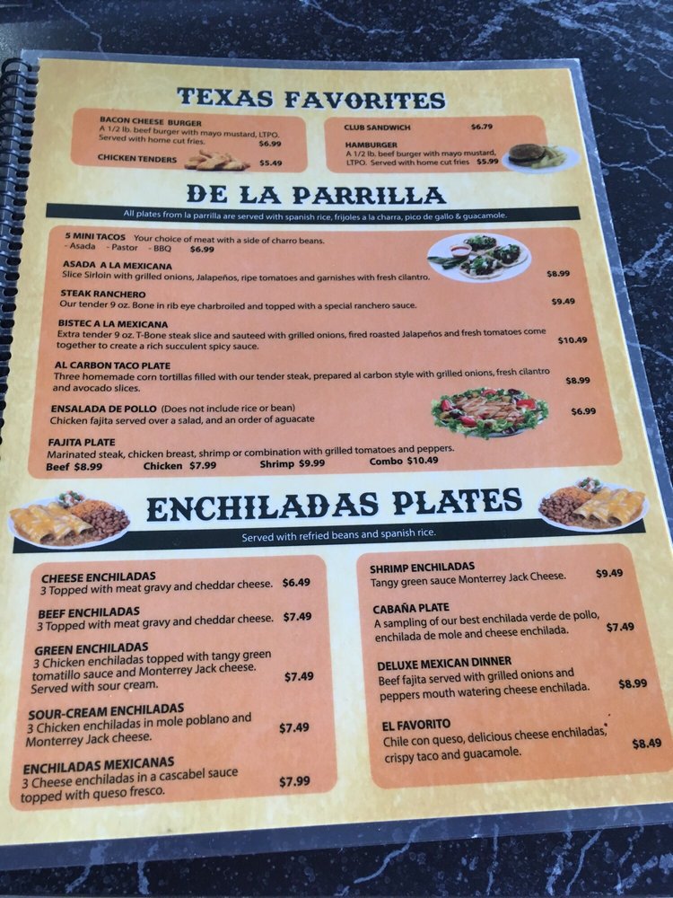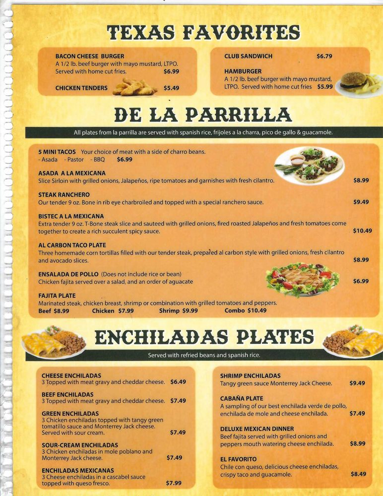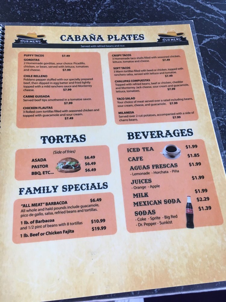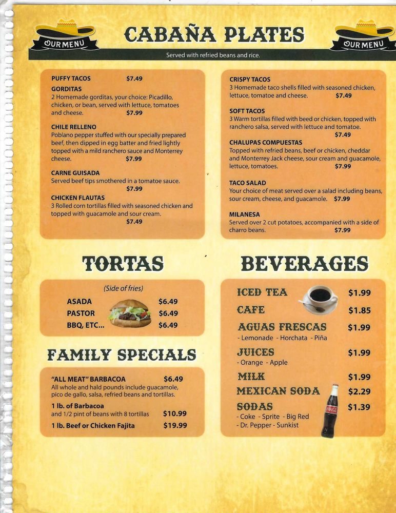 La Cabana de Jalisco Menu